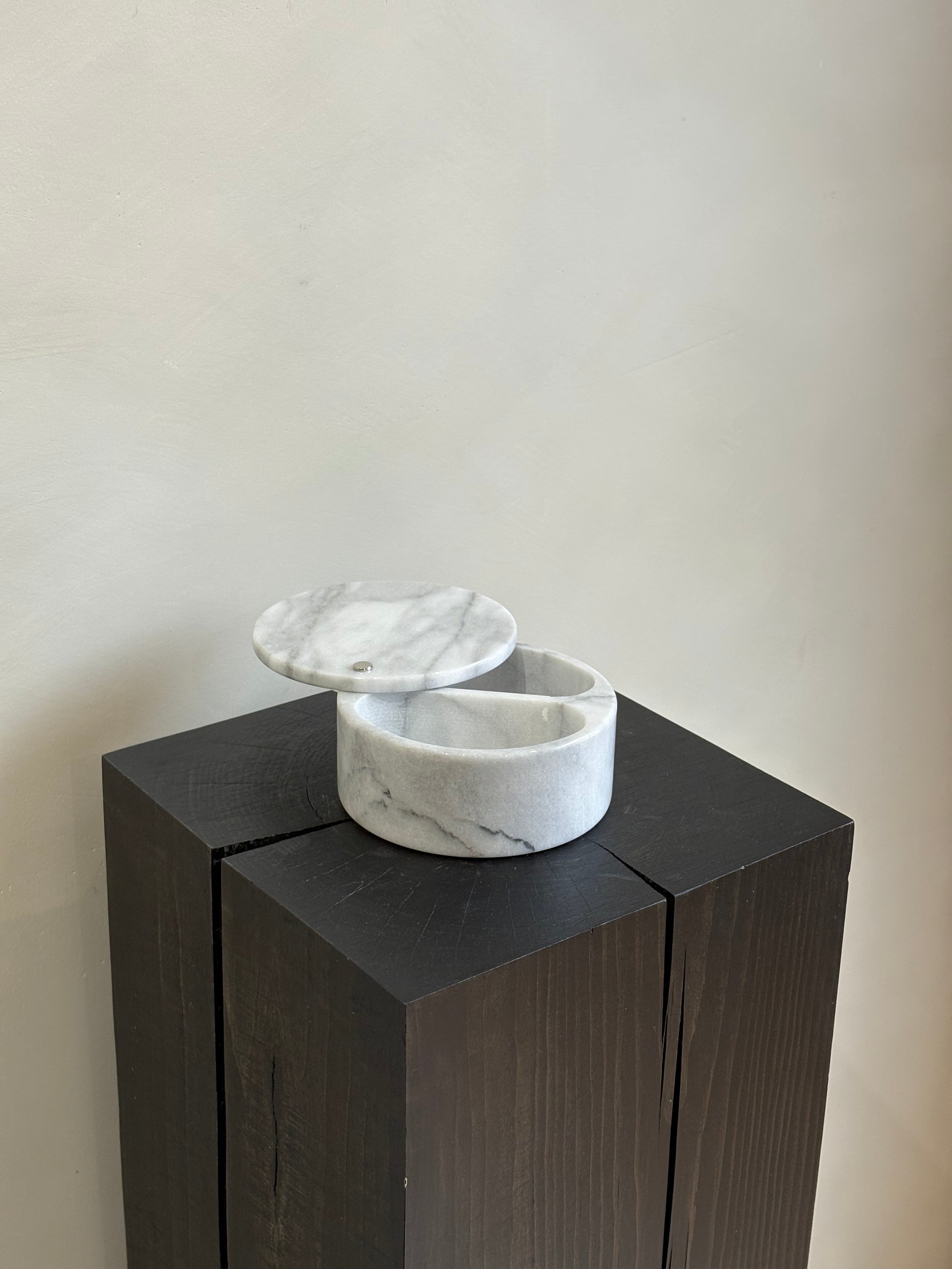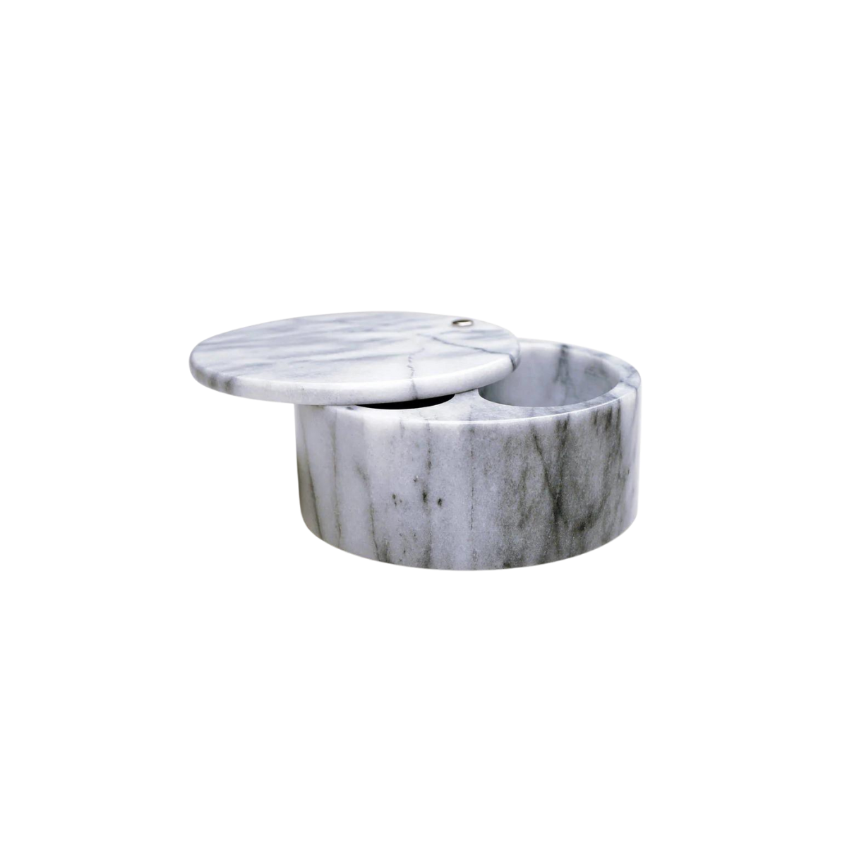 This marble salt cellar has a smooth swivel top and dual 5 oz. compartments. Fill with salts or sugars for convenient use In the kitchen!